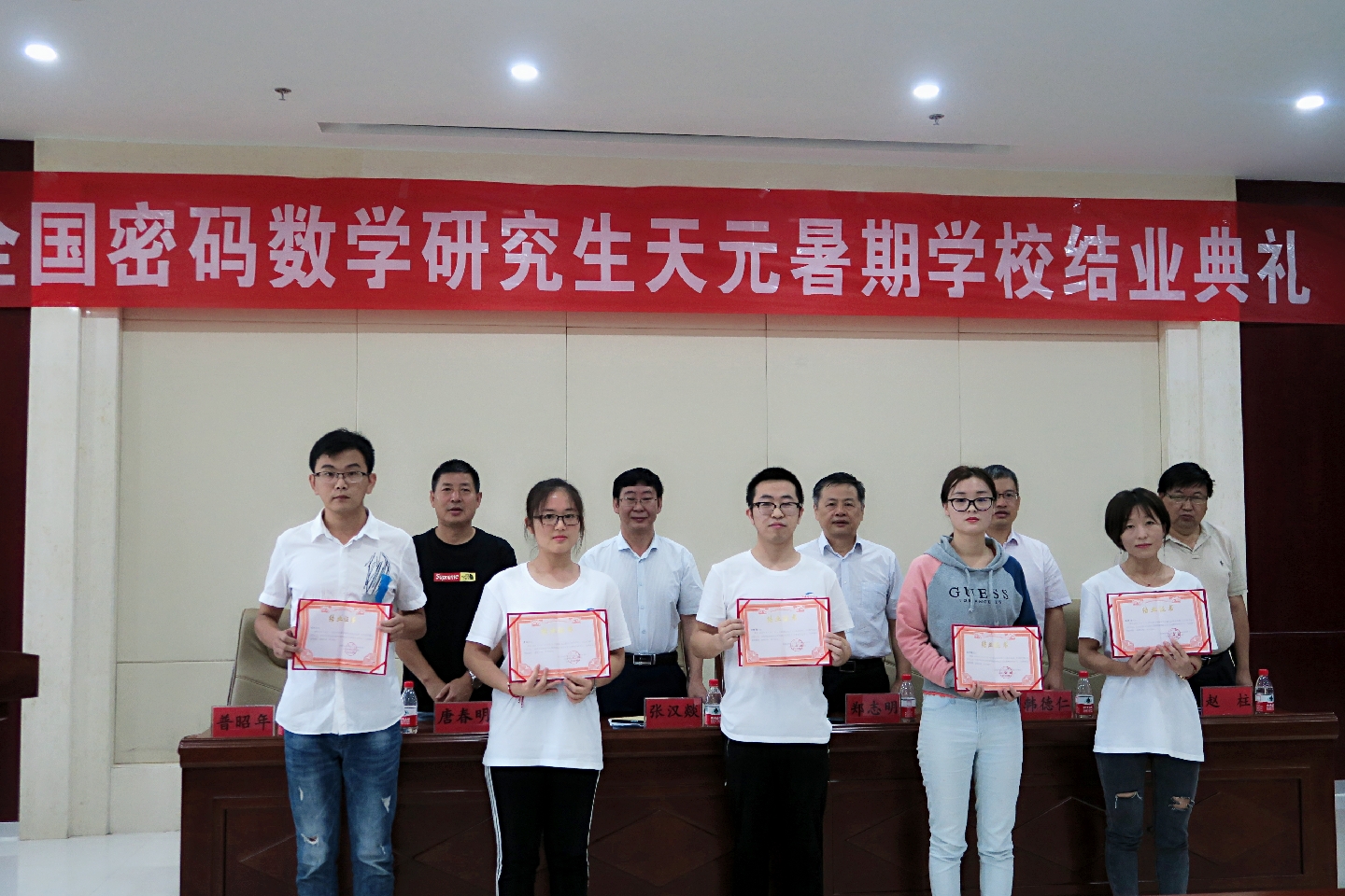 典礼上,韩德仁教授宣读了暑期公司结业生名单;郑志明教授介绍了国家自然科学基金委对天元基金举办本期暑期公司的支持背景、目的以及课程设置的构架。他表示感谢主讲老师的辛勤付出,感谢伟德国际bevictor官方网站校领导对本期暑期公司的重视和数学与统计公司对各项具体管理工作的精细化管理,感谢每位同学放弃暑假来安心学习,希望各位学员能通过本次学习进一步夯实对密码学的研究和学习。教师代表唐春明教授和员工代表北京大学孔潇然同学也分别作了大会发言,与在座的各位共同交流了参加本次暑期公司的深刻感受。
