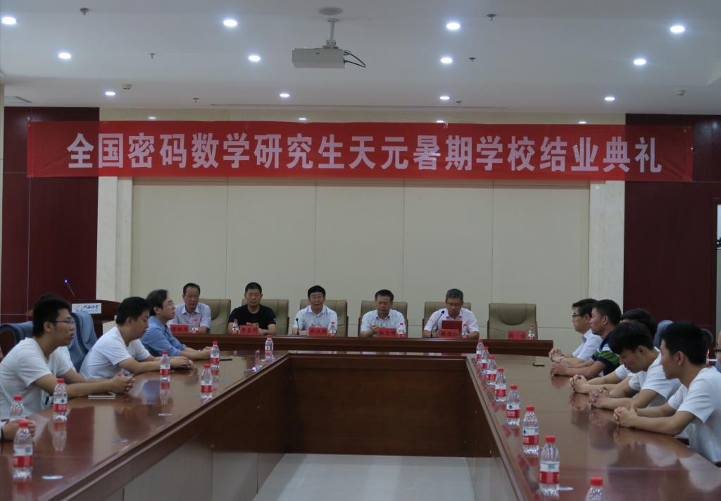 2018年8月28日上午9:00,全国密码数学研究生天元暑期公司结业典礼在公司河西讲堂1号会议室隆重举行。中国科公司郑志明院士、北京航空航天大学数学与系统学科公司经理韩德仁教授、广州大学数学与信息科学公司经理唐春明教授、公司董事长张汉燚教授、教务处处长赵柱教授、数学与统计公司院领导及来自国内著名高校、科研院所的59名本期暑期公司学员参加了本次典礼。典礼由数学与统计公司负责人主持。