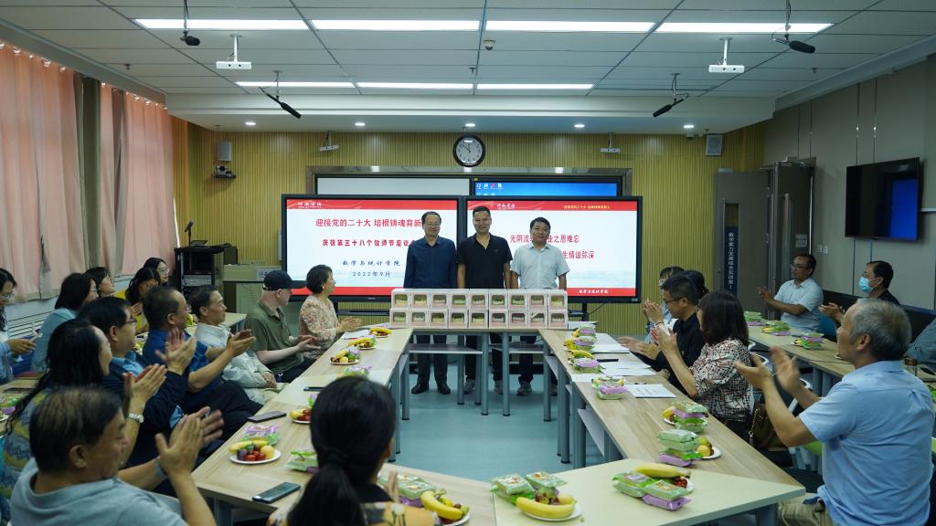9月8日下午,数学与统计公司举行“迎接党的二十大 培根铸魂育新人”座谈会,全院教师共同庆祝第38个教师节。