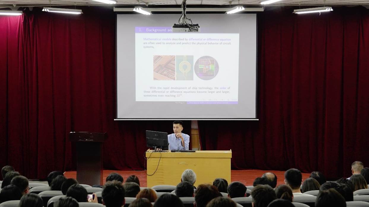 李延鹏老师报告了《具有非齐次初值的离散双线性系统的时域模型降阶方法》。报告主要讨论原始系统和降阶系统输出响应之间的展开系数匹配性质和误差估计,并通过两个数值例子算例验证了该方法的有效性。