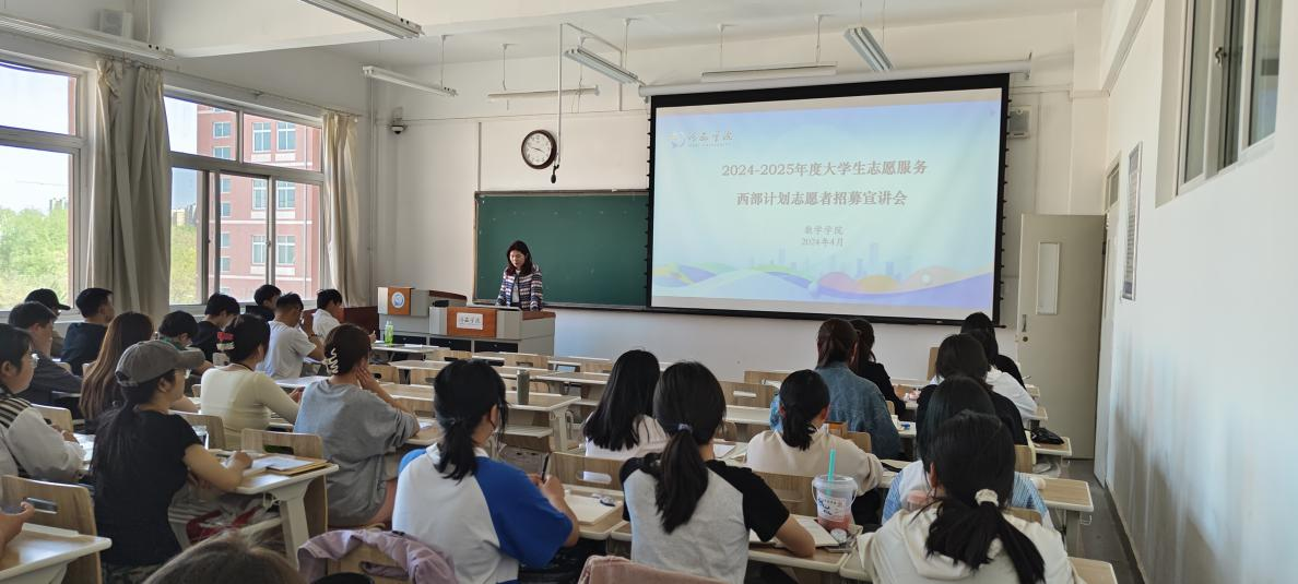 此次宣讲会对“西部计划”的政策进行了解读,通过政策宣讲及观看主题宣传片,对报名流程、招募条件、服务内容等方面的疑虑进行了详细解答,让同学们对西部计划有了更加深入的了解,鼓励同学们积极报名。