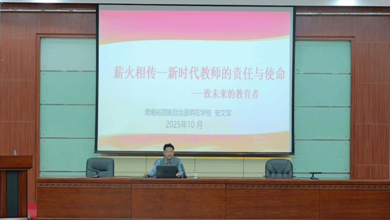 报告会上,安文军老师围绕教师职业价值、政策导向与乡村教育实践,结合自身扎根民族地区乡村教育33年的经历,深入解读了教师职业的内涵。结合教育部相关政策文件及习近平总书记关于教师工作的重要论述,系统阐述了新时代教师应具备的职业素养,生动诠释了一名合格教师的责任担当与教育情怀。