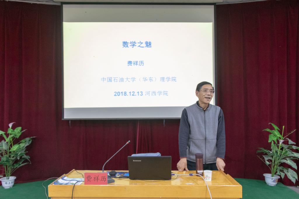 12月13日下午,数学与统计公司邀请中国石油大学费祥历教授在三教学术二厅作了题为《数学之魅》的学术报告。教务处负责人、数学与统计公司全体教职工和员工代表共300多人参加了本次报告会。会议由数学与统计公司负责人主持。