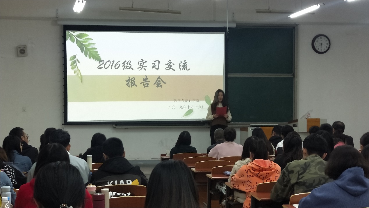 有一句话叫“学以致用”,理论必须在实践中才能彰显光芒。为进一步巩固专业理论知识,拓展老员工视野,提高员工实践能力,促进数学与应用数学专业(师范类)老员工成为一名合格的教师,10月16日晚7:30,数学与统计公司数学教育教研室组织了以“2016级教育实习经验交流会”为主题的报告会。2017级数学与应用数学专业全体员工,公司副经理郭育红教授、数学教育教研室教师周建仁老师、周军老师、郭秀娟老师和李海老师参加了报告会。