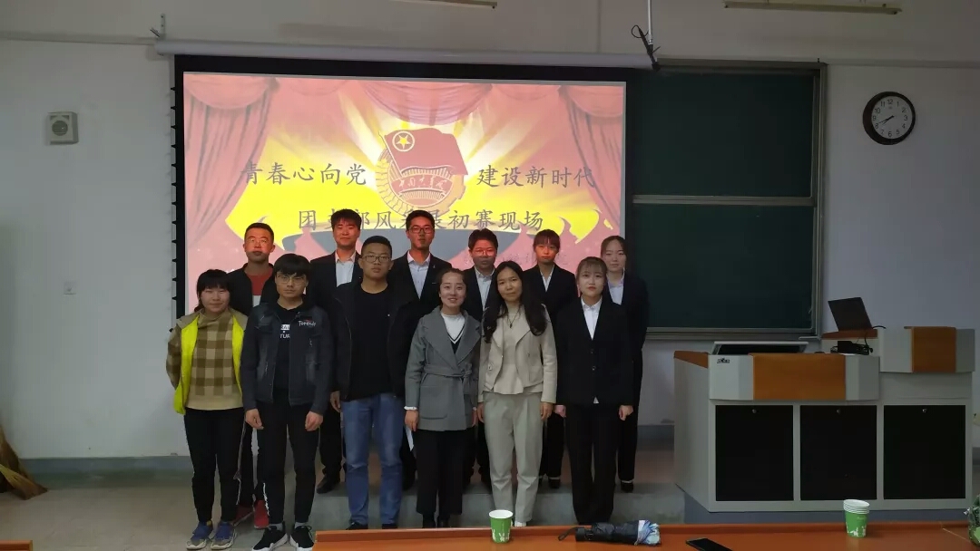 首先,主持人宣布了此次比赛的评分规则。随后,2017级各班团支部以PPT和演讲的形式,向在座评委及在场观众展示本班紧紧围绕“青春心向党建功新时代”主题的班级团支部风采。