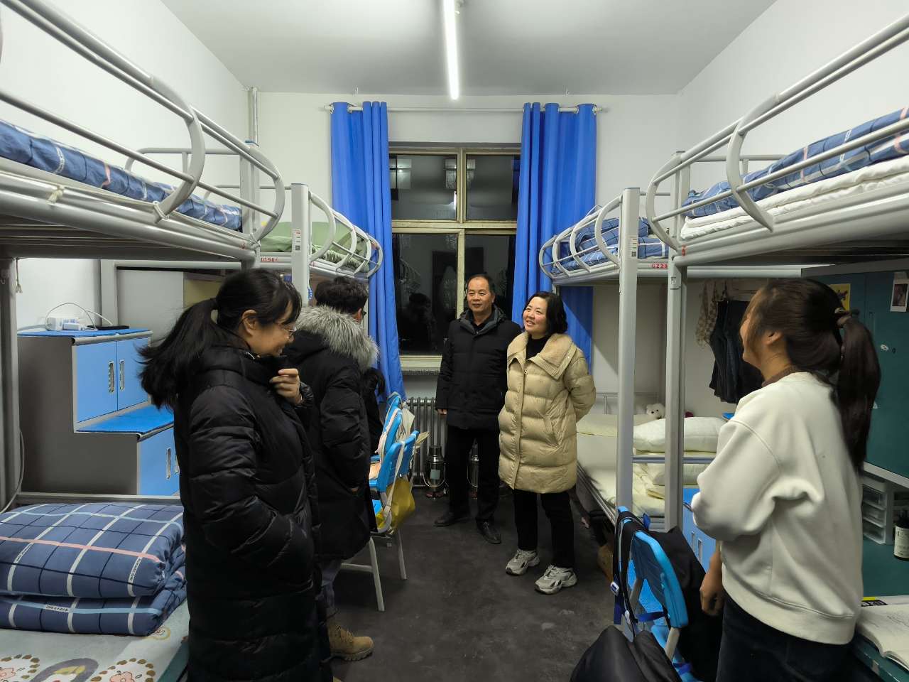 为了解员工的思想、学习和生活情况,12月20日晚伟德国际bevictor领导带领班主任及辅导员深入员工宿舍,看望同学们。